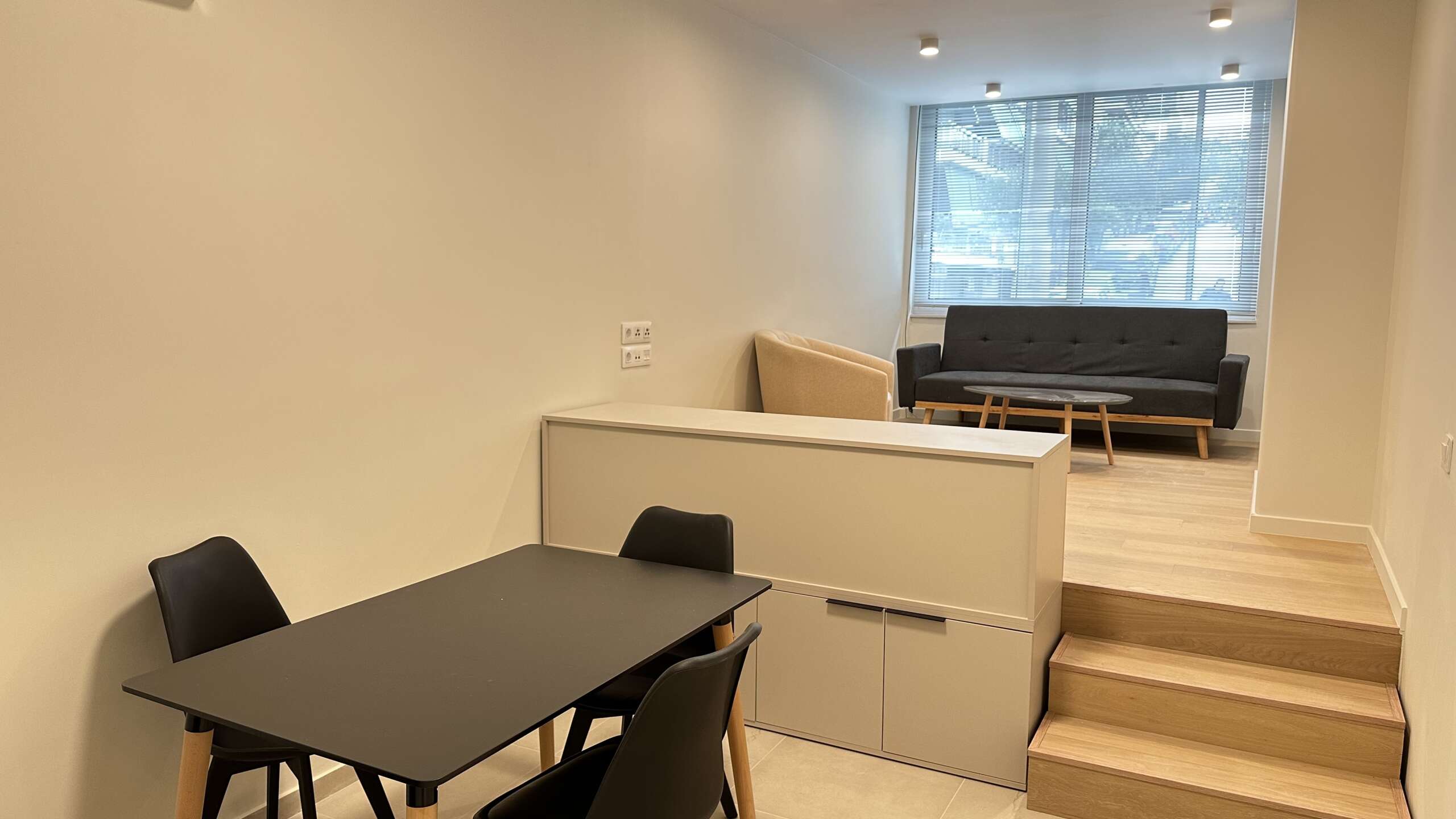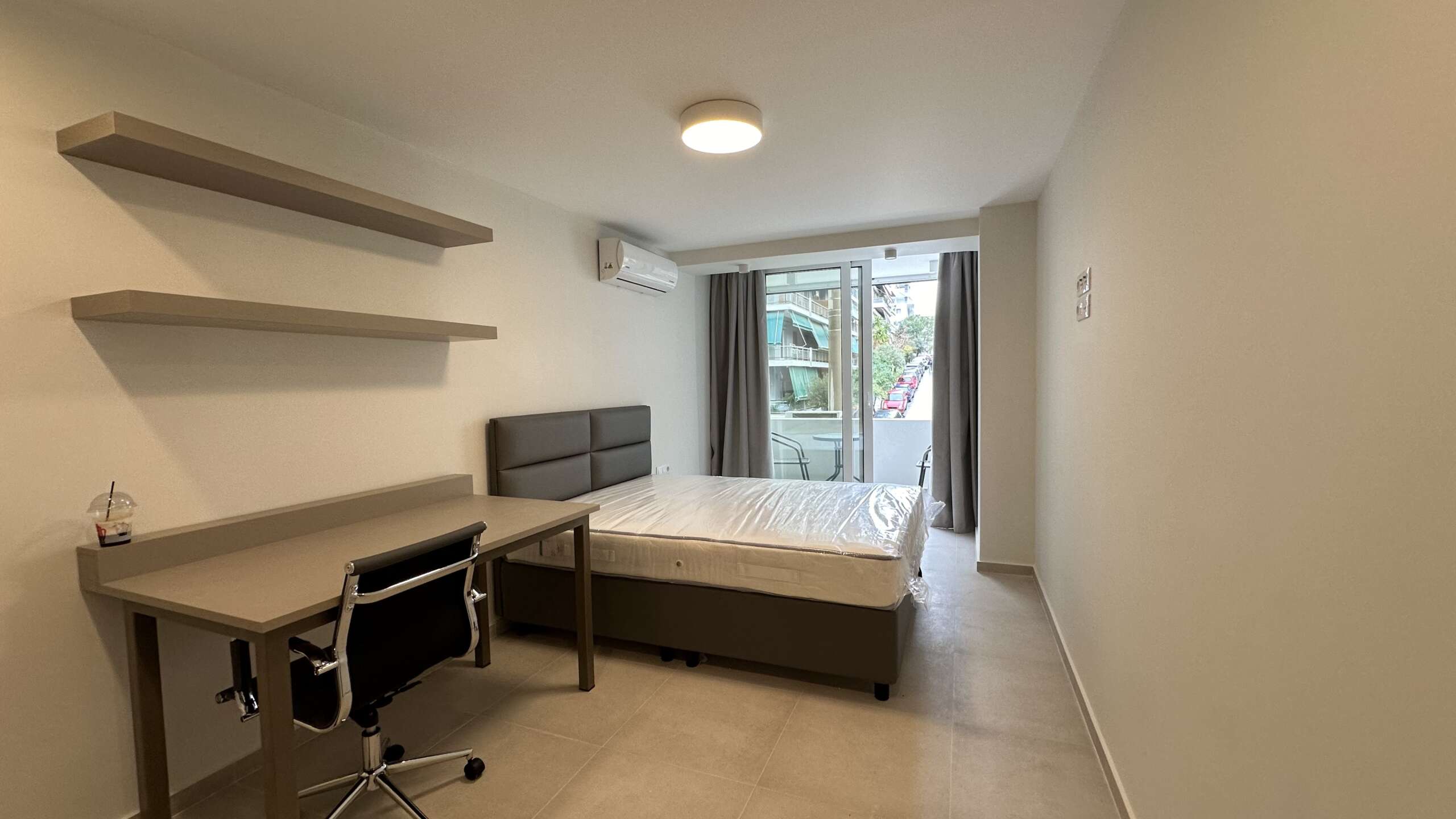 Καλαίσθητα χωρίσματα, γραφείο, Smart TV και καλωδίωση για Internet συμπληρώνουν τον κάθε χώρο.