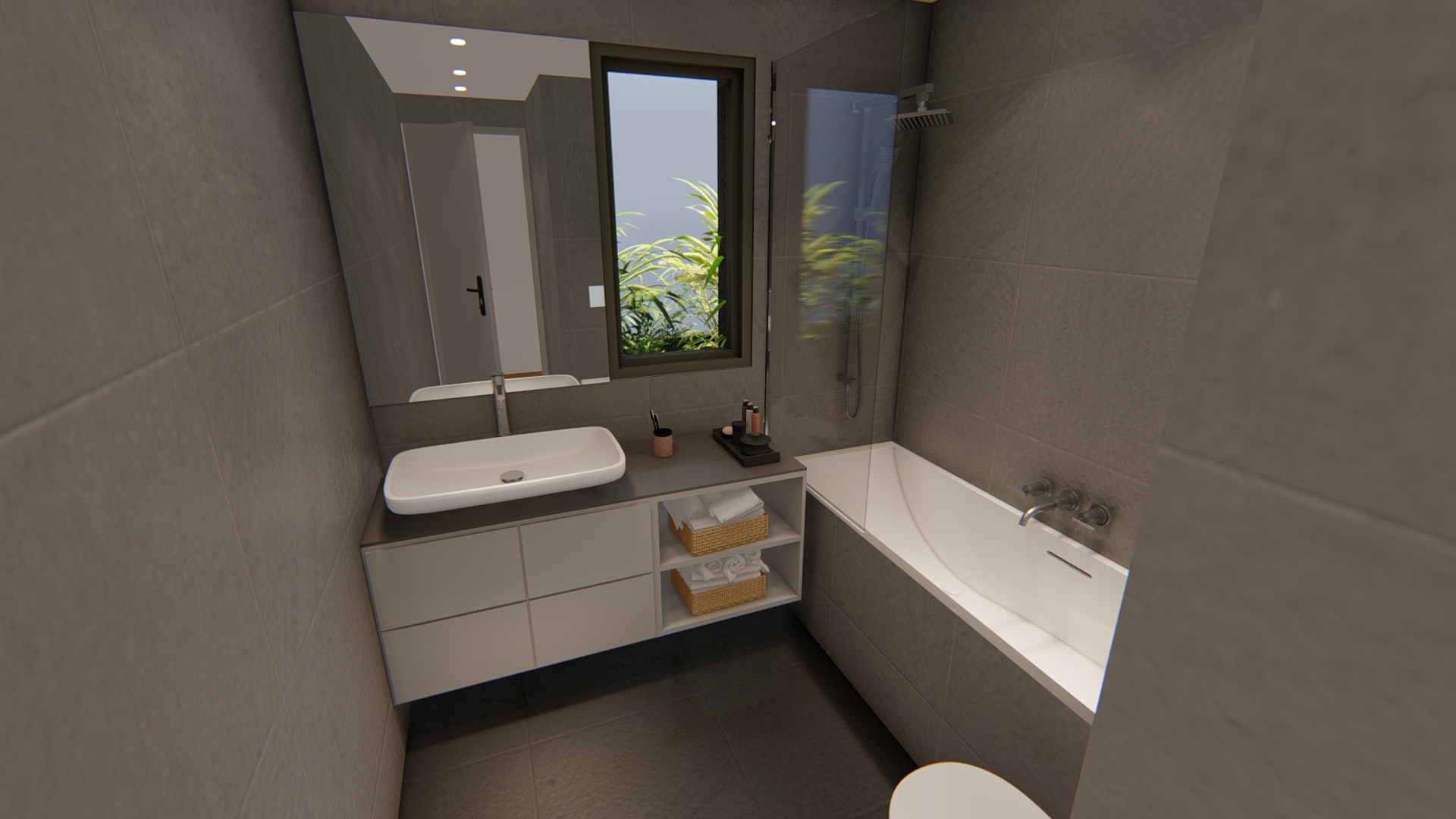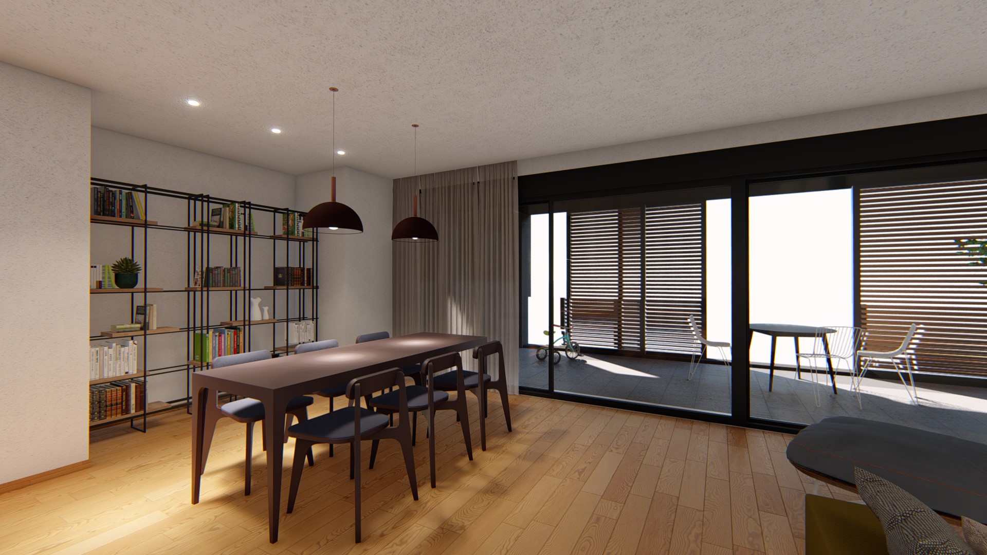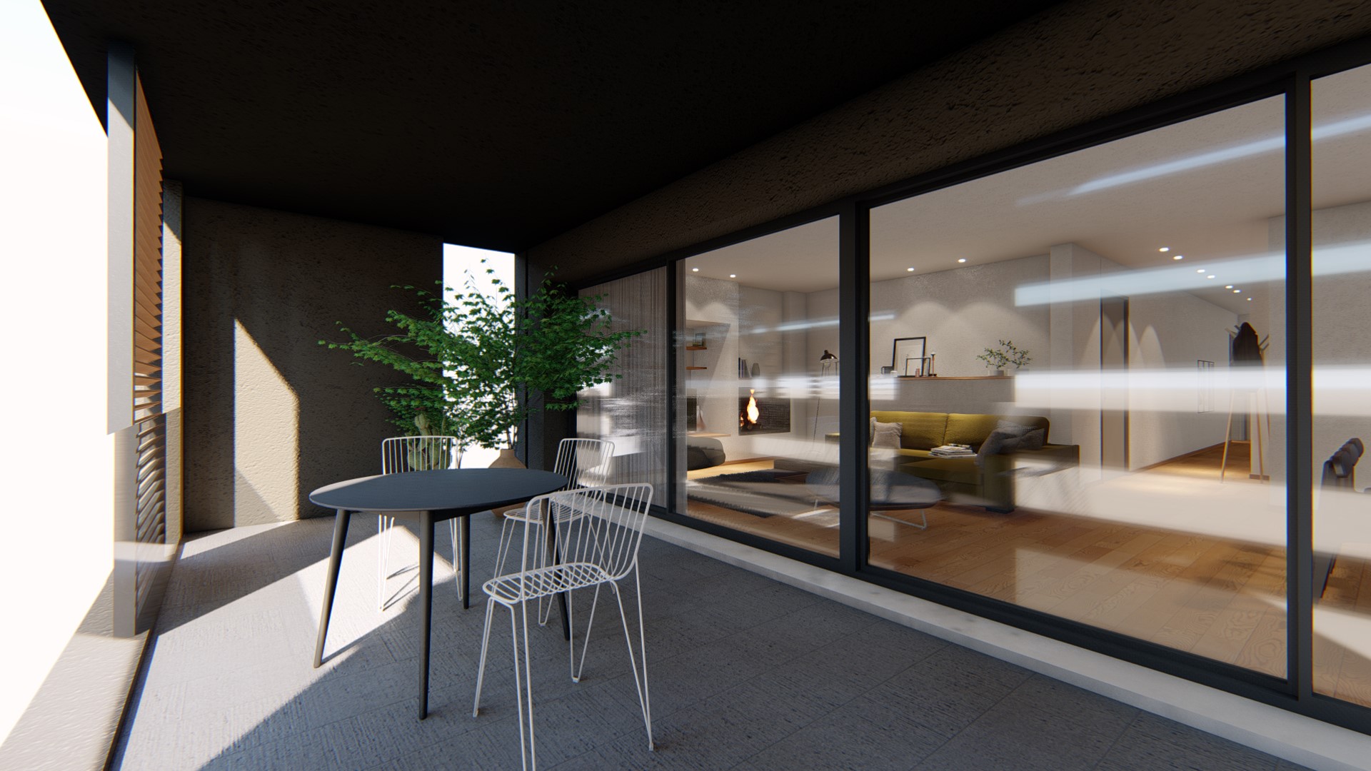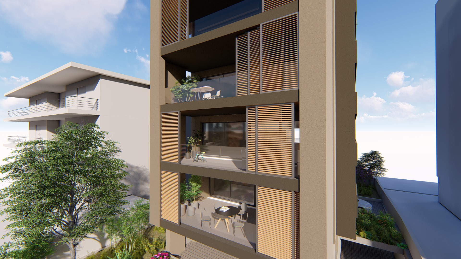 - Κινούμενες περσίδες στο εμπρός μπαλκόνι οι οποίες επιτυγχάνουν τόσο σκίαση